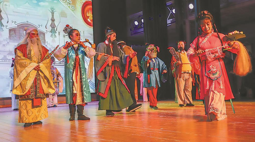 政和县文联积极促进艺术传播,推动文化艺术普及,持续开展文化下乡活动,将传统文化和红色文化相结合,以多种形式推动资源下沉、文化下乡,助推乡村文化振兴。图为近日,演员在杨源乡为村民表演国家级非物质文化遗产四平戏《蟠桃会》剧目。福建日报通讯员 杨则生 摄