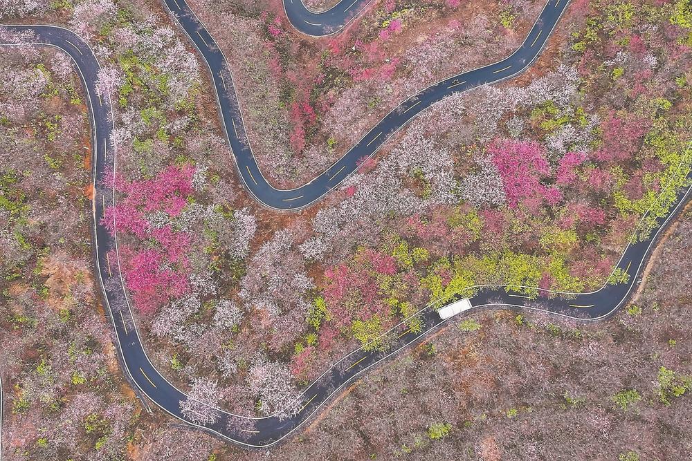 赖坊樱花园内,次第盛放的樱花簇拥枝头。谢贵明 摄