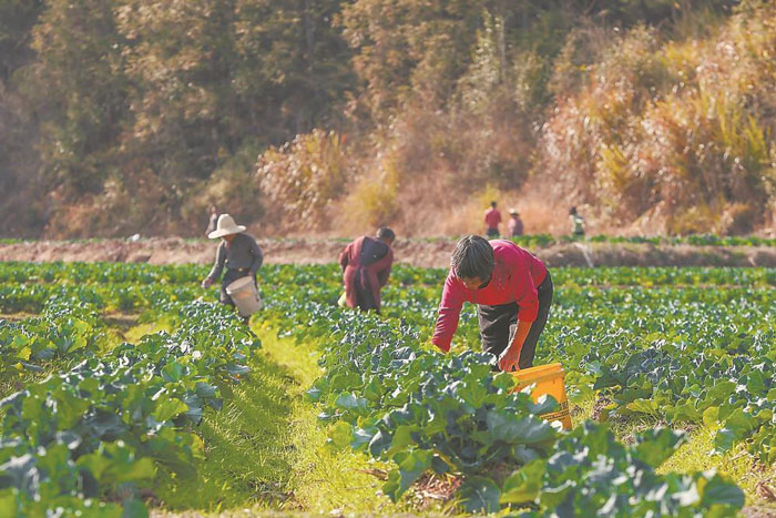 宁化罗坑村村民正忙着采收西蓝花