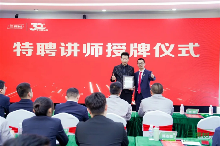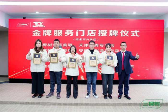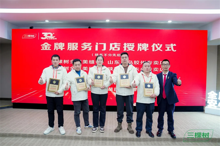 三棵树积极践行“以用户为中心、与合作者共赢、与奋斗者共享”的核心价值观。本次发布会,三棵树特邀美缝行业资深专家杨杰担任特聘讲师,美缝项目部负责人夏德亮为他颁发美缝特聘讲师荣誉证书,彰显三棵树对合作伙伴成长的重视与赋能决心。活动现场还为全国10家门店授予“金牌服务门店”称号,这些门店以卓越的服务品质和创新的运营模式,为行业树立了服务典范。