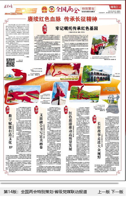 为深入贯彻落实习近平总书记在福建考察时的重要讲话精神,在全国两会召开之际,福建日报依托官方网站——东南网发起15省市党媒跨省联动报道,联合长征沿线贵州、甘肃、宁夏、湖南、湖北等省(区、市)媒体共同推出大型融媒体报道,聚焦当地长征国家文化公园的建设情况,展现长征精神赋能各地发展,讲好新时代的长征故事。