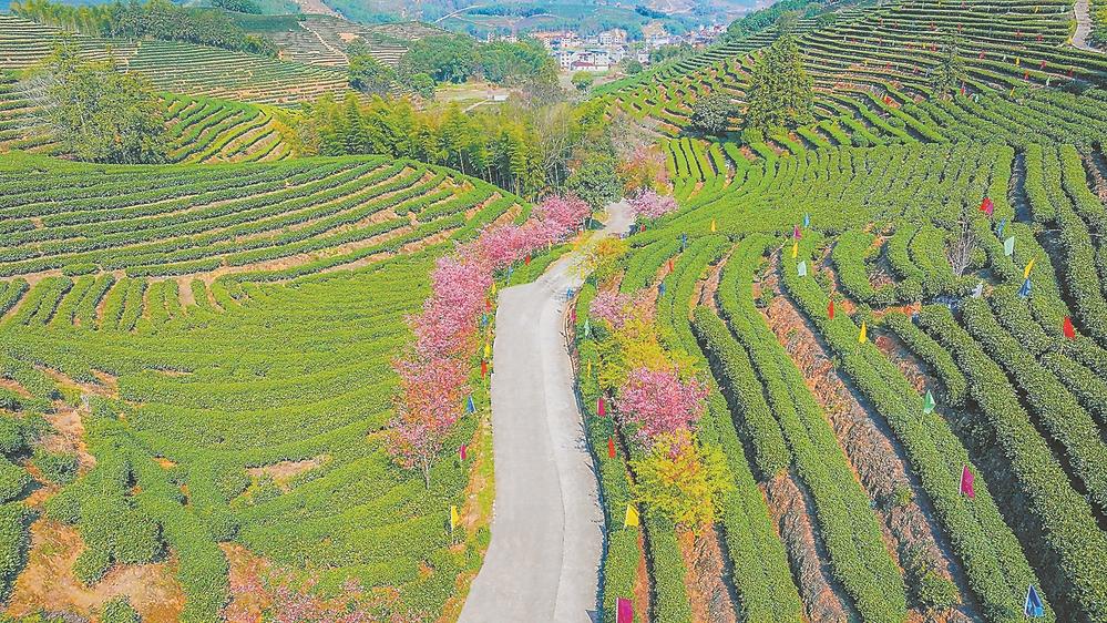 阳春时节,在松溪县茶平乡万亩茶园,樱花沿着茶山不断延伸,竞相绽放。在茶山套种樱花、桃花,可以防治病虫害,打造复合式立体生态茶园,有效促进茶农旅融合发展。近年来,松溪县发挥资源优势,持续统筹推进“三茶”高质量发展。