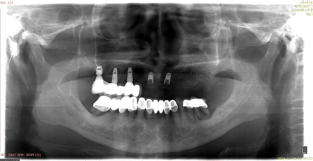 经检查发现,柯女士上颌中间的两枚种植体,其中一枚基台折断,螺丝也有部分折断在植体里,另一枚连部分植体都断裂了。医生告知,若想继续做种植牙,需要先剖开牙床取出两枚坏掉的种植体才行,这对一位高龄老人来说损伤太大。2024年11月,柯女士选择在口腔医院完成了几颗上颌牙的活动义齿修复。