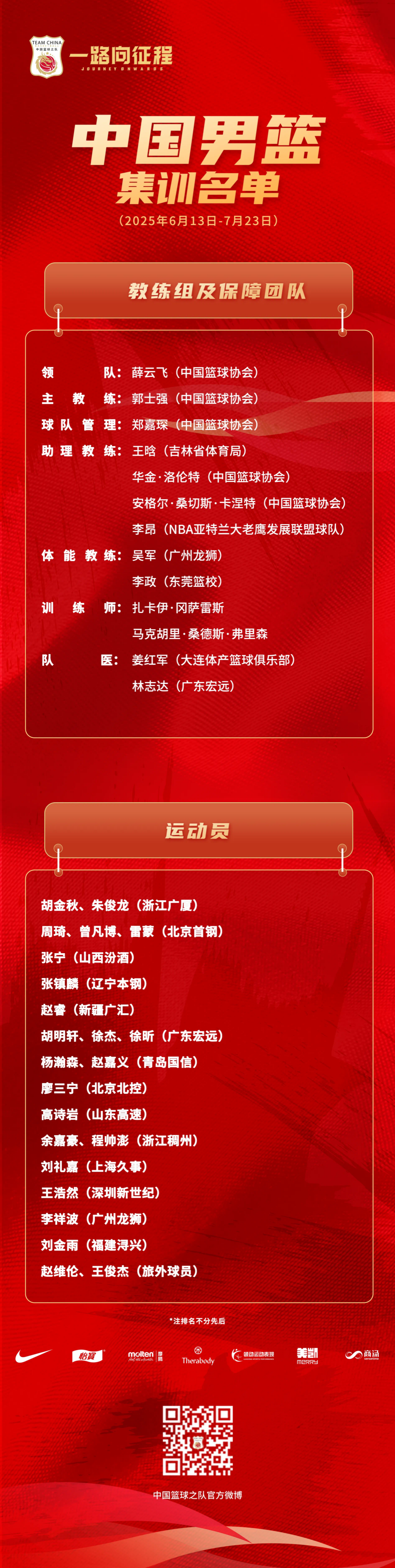 新一期中国男篮集训名单