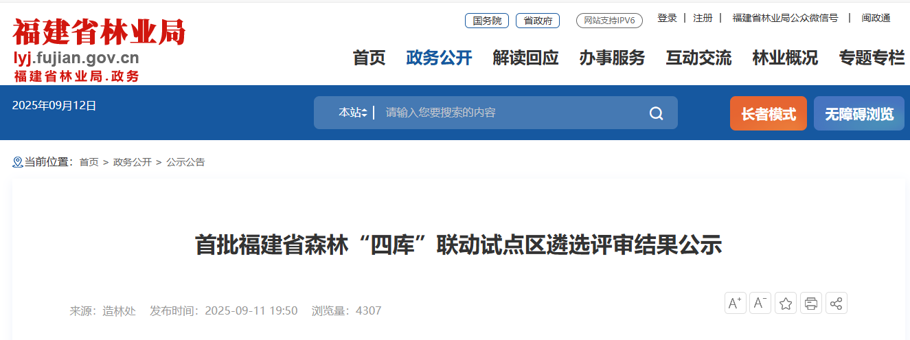 按照《福建省森林“四库”联动试点区遴选工作方案》(闽林文〔2025〕65号),省林业局组织专家对首批申报单位进行了评审。根据评审结果,拟将24个单位确定为首批福建省森林“四库”联动试点区。现予以公示,公示期五个工作日。