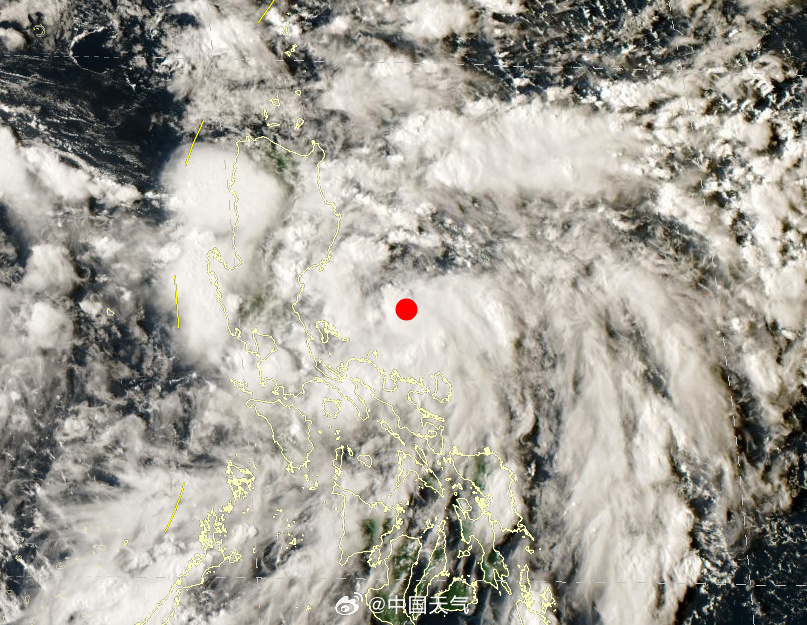 菲律宾以东海面的热带扰动已于今天14时加强为热带低压。