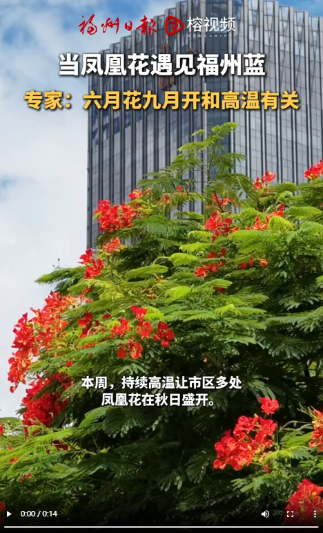 凤凰花遇见福州秋日蓝 专家:六月花九月开或和近期高温有关
