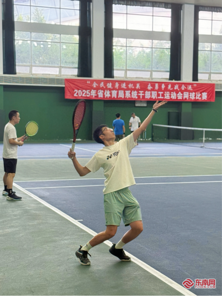 东南网9月20日讯(本网记者 薛莞馨 文/图)9月20日,由福建省体育局直属工会主办,福建省体育局后勤服务中心工会承办,福建省奥林匹克体育中心工会、福建省网球协会协办的“全民健身进机关 奋勇争先战全运”2025年省体育局系统干部职工运动会网球比赛在福建省奥体中心网球馆举办,省体育局系统共20支代表队参加比赛。