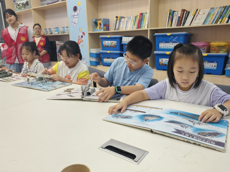 活动伊始,屏东社区关工委常务副主任林开惠为人才家庭子女介绍活动意义,强调国防教育要从娃娃抓起。随后进入阅读环节,孩子们共同翻阅了国防科普教育读物《儿童军事百科全书》,书中生动的装备插图深深吸引了青少年。现场志愿者还向每位小朋友发放了“扫黄打非”绿书签,引导青少年远离有害出版物,养成良好的阅读习惯。