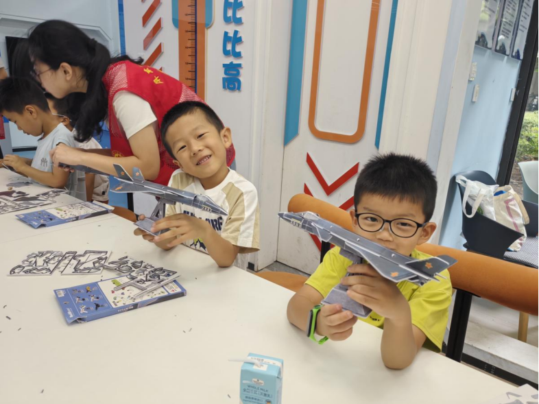 活动结束时,孩子们举着自己组装完成的战斗机模型合影留念,脸上洋溢着自豪的笑容。这些模型、绿书签及科普读物一起被带回小朋友家中,成为持续发挥教育作用的载体。(通讯员 潘雪琴)