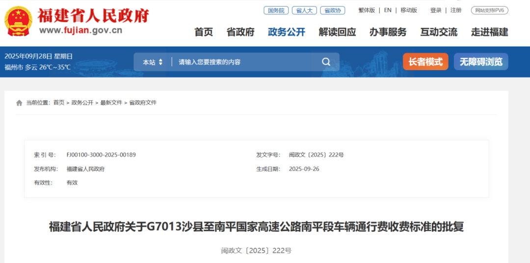 你们《关于呈请批准G7013沙县至南平国家高速公路南平段车辆通行费收费标准的请示》(闽交规〔2025〕42号)收悉。经研究,同意你们关于G7013沙县至南平国家高速公路南平段车辆通行费收费标准的意见,即客车基本费率按小型车(一类客车)0.60元/车公里计算,货车及专项作业车基本费率按小型车(一类货车)0.45元/车公里计算。