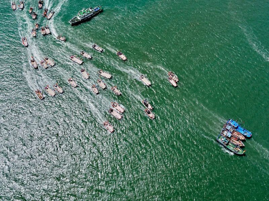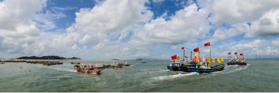 最令人期待的环节莫过于渔船丰收场景,渔船装饰着"丰收"字样彩旗,在鞭炮齐鸣中满载而归、平安丰收!这壮观的场景,正是福清人对"耕海牧渔"最生动的诠释。