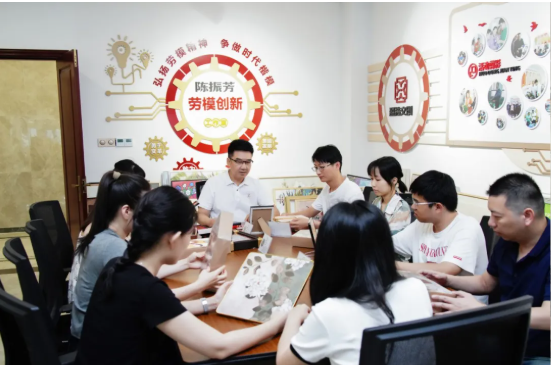 陈振芳党员工作室中党员、技术骨干等参与谈论研发