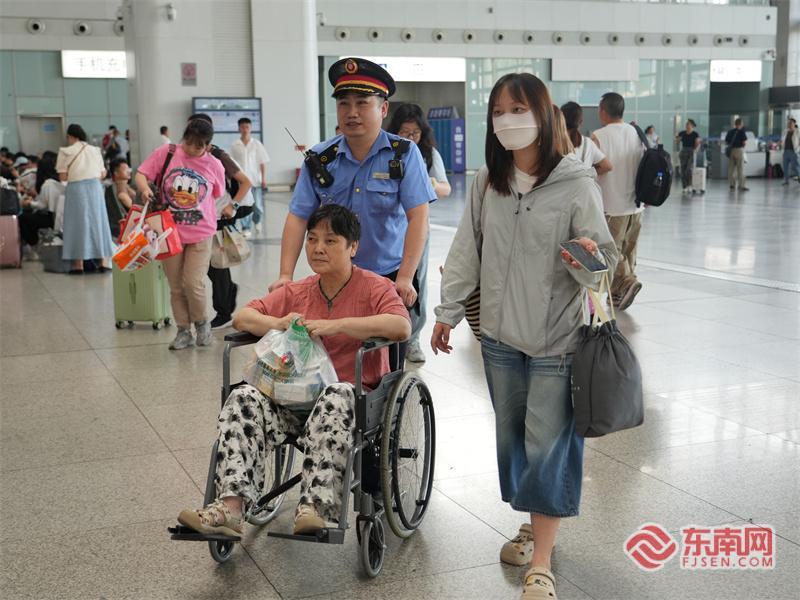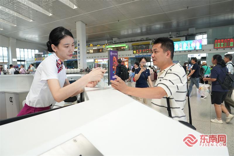此外,福州火车站强化重点服务,专门为老幼病残孕等重点旅客,以及因特殊原因途中耽搁、需紧急进站的旅客开设便捷进站通道;针对进站时间不足15分钟的旅客,安排专人引导,提供快速验证、安检服务,保障其优先进站乘车。车站还新增145名党团员服务队成员和铁路青年志愿者,分布在通廊、地道、候车厅、站台、售票厅等关键区域,开展巡视疏导工作,同时协助旅客购票、引导进站和使用电梯,并重点做好老年人及脱网人群的线下业务咨询与办理服务,解决特殊群体的出行难题。