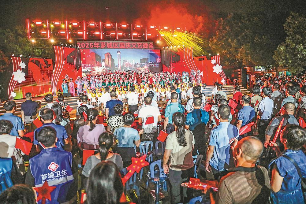 9月28日晚,漳州市芗城区在林语堂文化旅游区主广场举办“盛世庆华诞・芗城谱新篇”2025年芗城区国庆文艺晚会。晚会通过四大篇章12个精彩的文艺节目,生动展示了闽南文化独特魅力,向伟大祖国献上美好祝福。福建日报报业集团记者 杨凌怡 通讯员 郑文典 摄