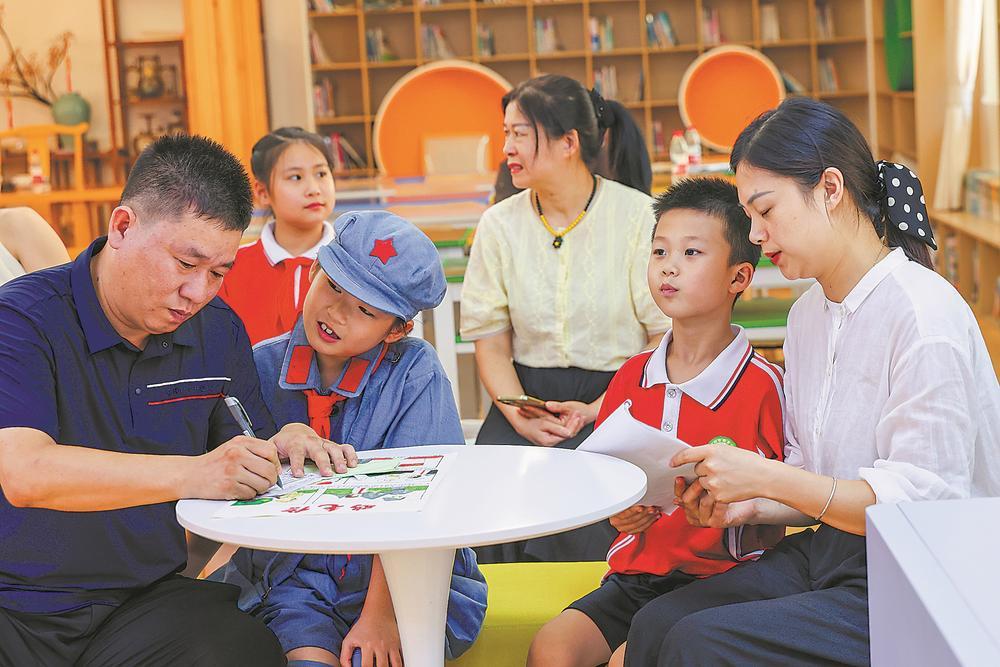 9月28日,武夷山市新丰小学开展“读红色经典,传家国情怀”主题活动,学生及家长共读红色经典绘本,迎接国庆。福建日报通讯员 邱汝泉 摄