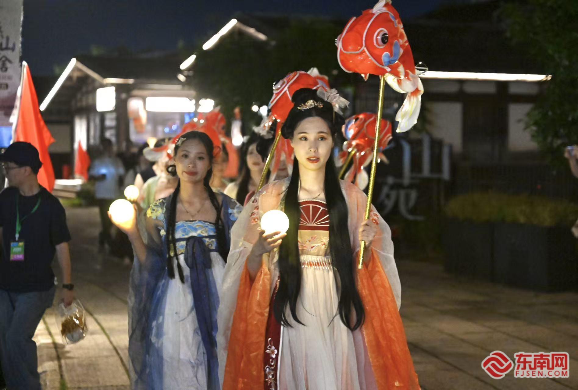 夜幕降临,造型灵动的鱼灯在街巷游走,游客们追着光影穿梭,欢声笑语满街巷。民乐快闪队伍奏响《花好月圆》,与巡游队伍一道和着节拍哼唱,中秋团圆的温暖氛围在此刻拉满。