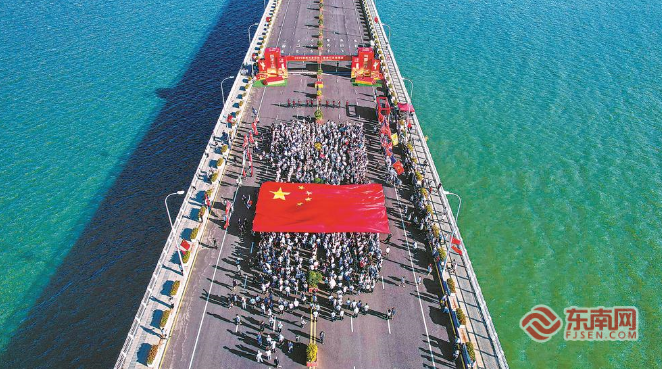 9月28日,漳州开发区56家企事业单位共2000余名职工齐聚双鱼岛大桥,开展健步行文体活动。活动期间,大家托举国旗,表达对祖国的热爱之情。