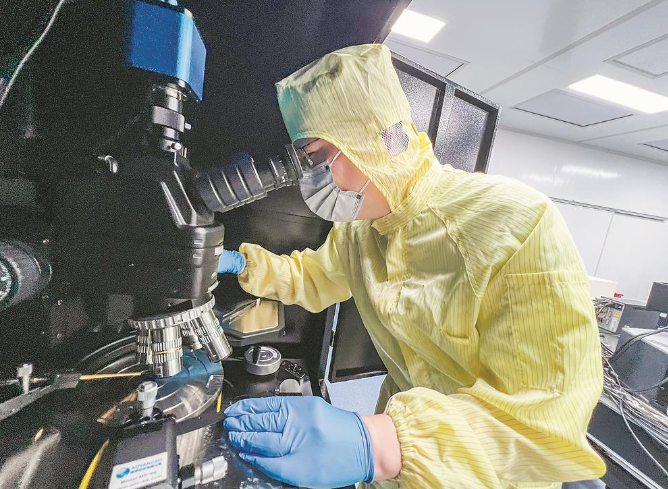 东南网10月2日讯(福建日报记者 李珂 文/图)在福州大学平板显示国家地方联合工程实验室的洁净室里,几个包裹防护服的身影在精密仪器间穿梭。光刻机微光下,福州大学研究员陈惠鹏带领团队专注调试设备,对刚制备的电子器件作性能测试——屏幕上跳动的数据,将整理成判断器件优劣的表格。