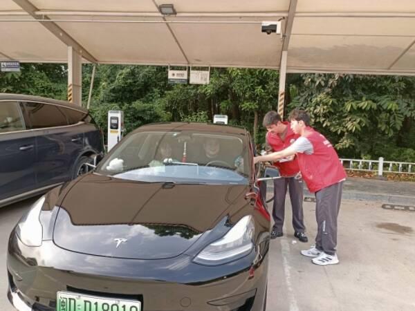 10月1日早上,从福州驱车出发前往福建高速兴泰服务区。这个国庆,我选择在高速服务区当一名志愿者,守在新能源车辆充电区,为过往车主解难题。