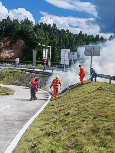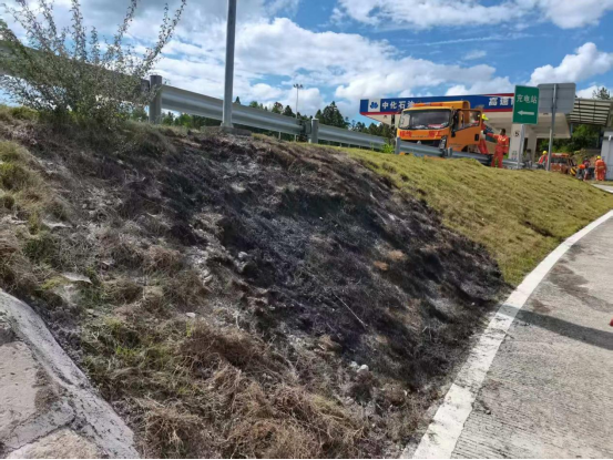 服务区后通道边坡突发火情,大金湖加油站紧急处置