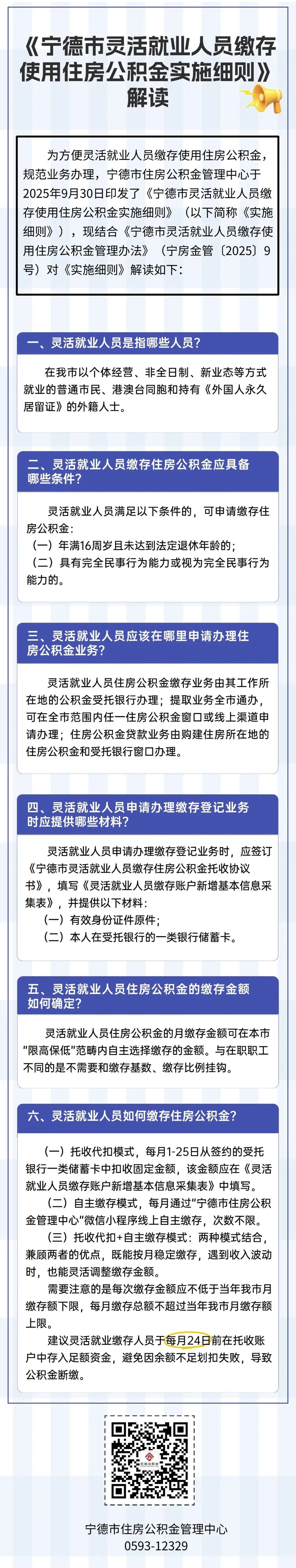 近年来,宁德市灵活就业群体规模持续扩大,为有效发挥制度普惠作用,加大对宁德市灵活就业人员住房需求的支持力度,宁德市住房公积金管理委员会发布《宁德市灵活就业人员缴存使用住房公积金管理办法》。宁德市住房公积金管理中心于近日印发了《宁德市灵活就业人员缴存使用住房公积金实施细则》。来看相关图解——