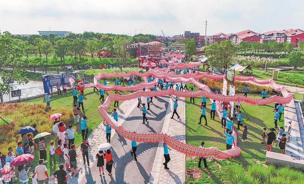 1日至3日,晋江九十九溪田园风光文体旅嘉年华活动在晋江市池店镇田洋村举行。活动以九十九溪田园为舞台,通过田园徒步、非遗展演等,让市民游客感受田园魅力。图为活动期间举行的舞龙表演。
