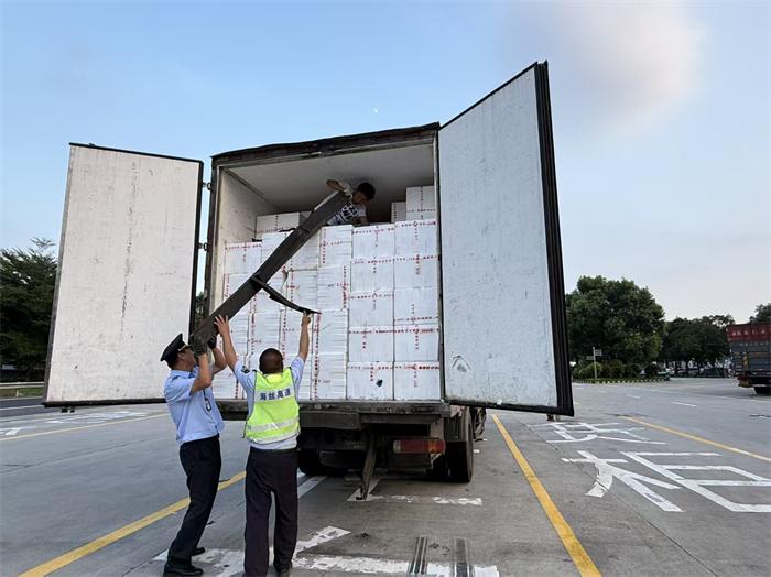 10月1日16时45分,一辆鲁F牌照的重型厢式货车驶入兴泰服务区。车辆刚停稳,后保险杠突然断裂脱落。这一突发情况被正在执勤的漳州高速执法支队长泰中队执法人员及时发现,他们立即上前了解情况。
