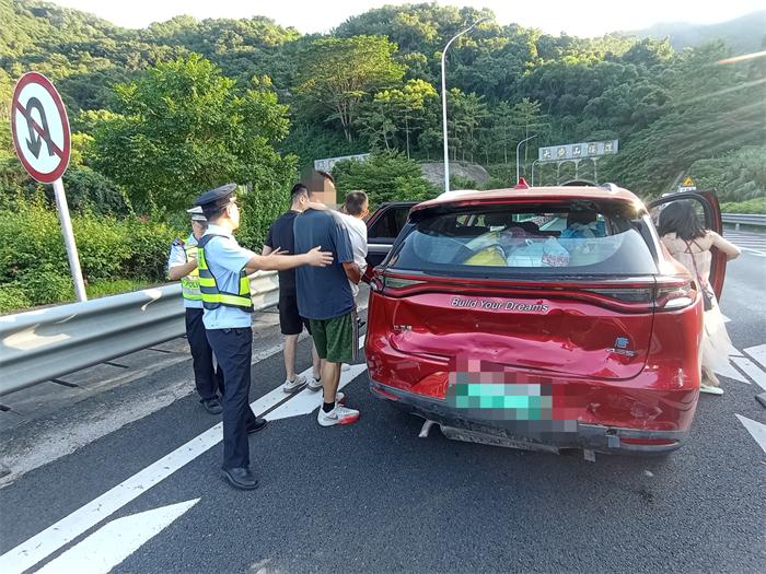 正在隧道口保畅点执勤的漳州高速执法支队二大队执法人员第一时间发现险情,立即联合高速交警、路勤等部门实施安全布控,引导后方车辆减速避让,有效防范二次事故。同时,迅速将司乘人员转移至安全区域,并通过联动快处机制完成现场勘验与清障工作,及时恢复交通秩序。