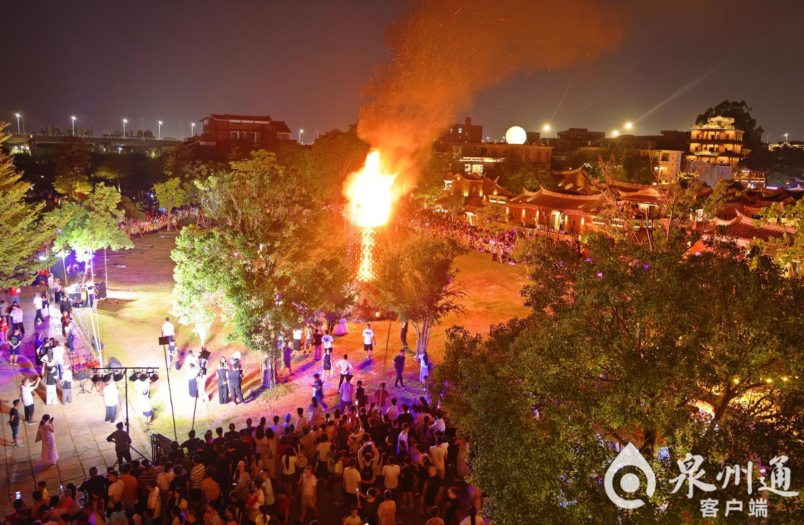 10月6日晚,晋江梧林传统村落举办烧塔仔民俗活动,让游客感受传统佳节氛围。(融媒体记者陈英杰 摄)