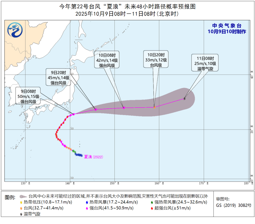 预计,“夏浪”将以每小时40~45公里的速度向偏东方向快速移动,强度逐渐减弱。未来“夏浪”对我国海域无影响。