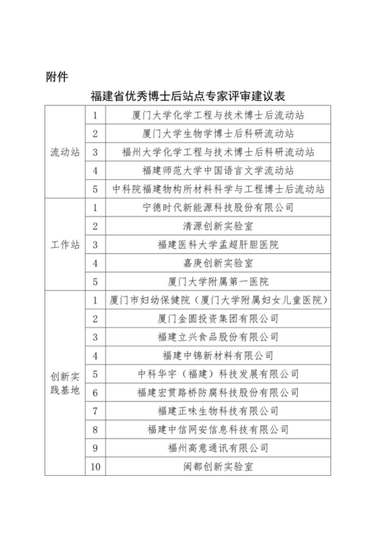 福建新增20家优秀博士后站点单位