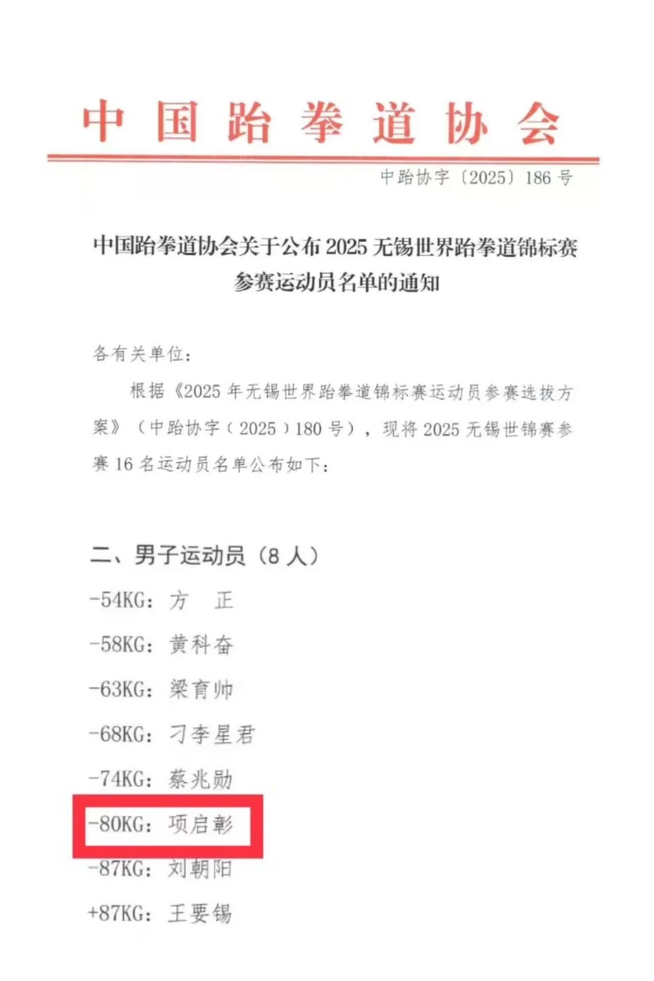 中国跆拳道协会近日公布两项重要名单,龙岩连城籍跆拳道运动员项启彰位列其中,入选国家队进行为期两个月的集训,并将参加2025年无锡世界跆拳道锦标赛,代表中国队出战男子-80KG级别比赛。