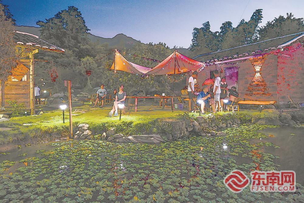 建宁县森林旅游让金铙山脚下的村居越来越热闹,民宿和露营点成为年轻人最喜欢的打卡旅游处。福建日报记者 王毅 摄