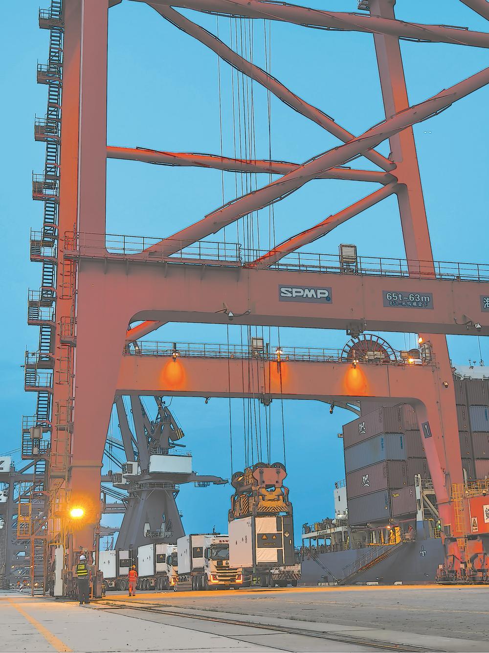 得益于集装箱式锂电池储能系统海上安全运输指南、专项合同范本等制度创新,以及AI智能查检、全链条作业服务能力提升等一系列“组合拳”,海辰储能每个航次的港前物流综合成本降低了75%。良好的港口物流环境,进一步提升了企业的国际市场竞争力,今年海辰储能的集装箱储能产品出口量已超2700标箱,业务覆盖20多个国家和地区。