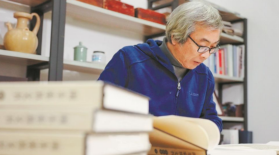 郑勇在研读资料。 叶晓晖 摄