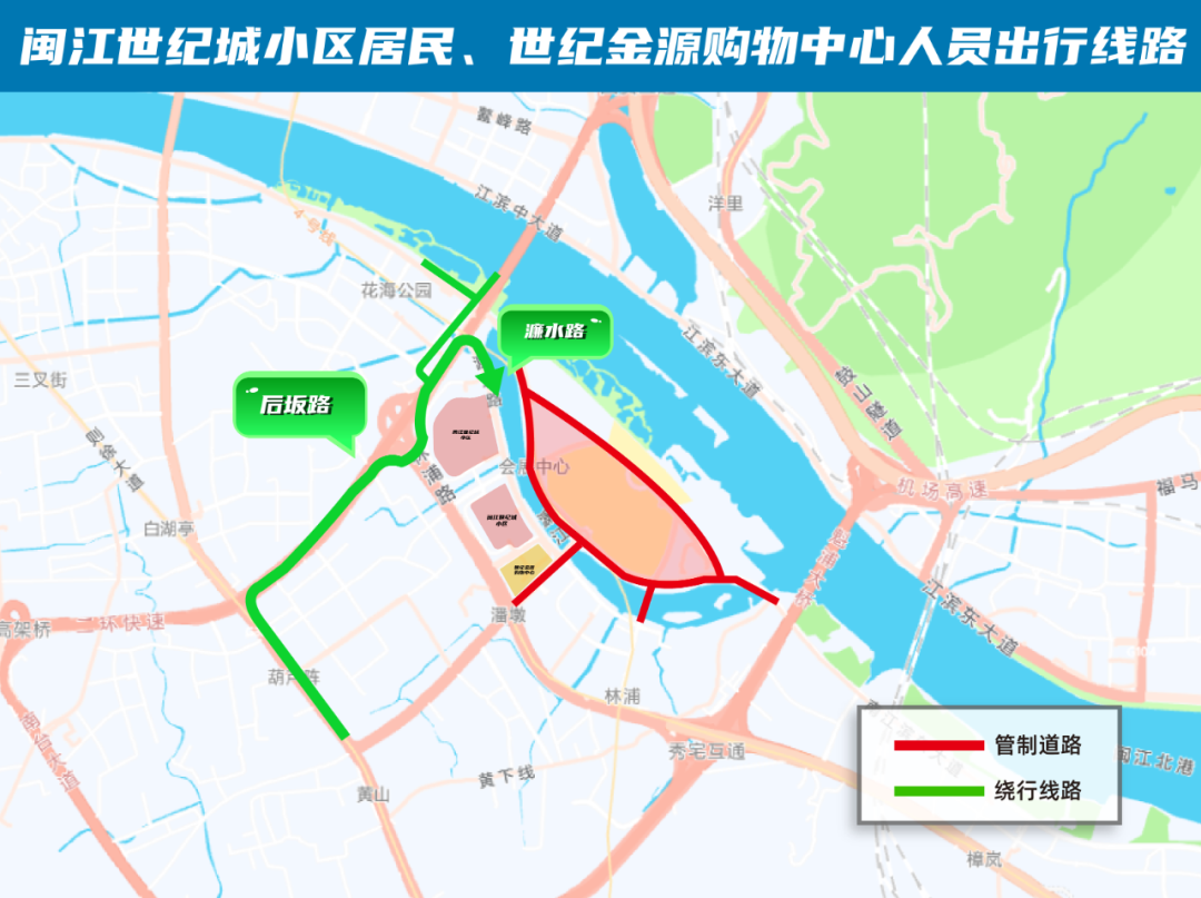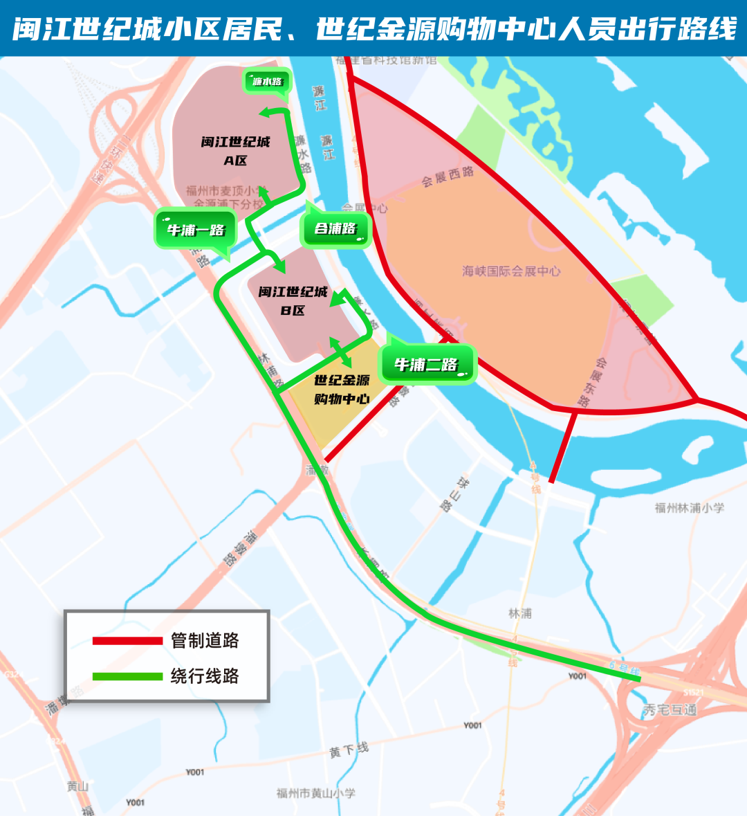 闽江世纪城小区居民、世纪金源购物中心人员出行路线