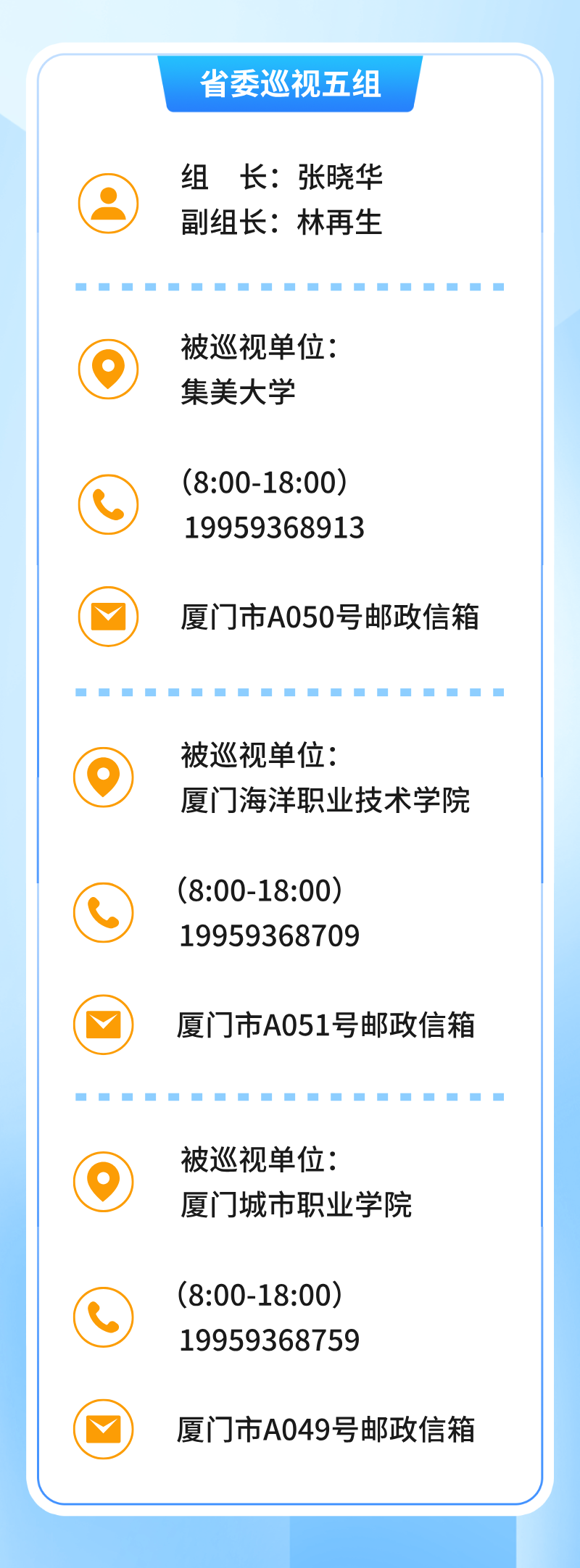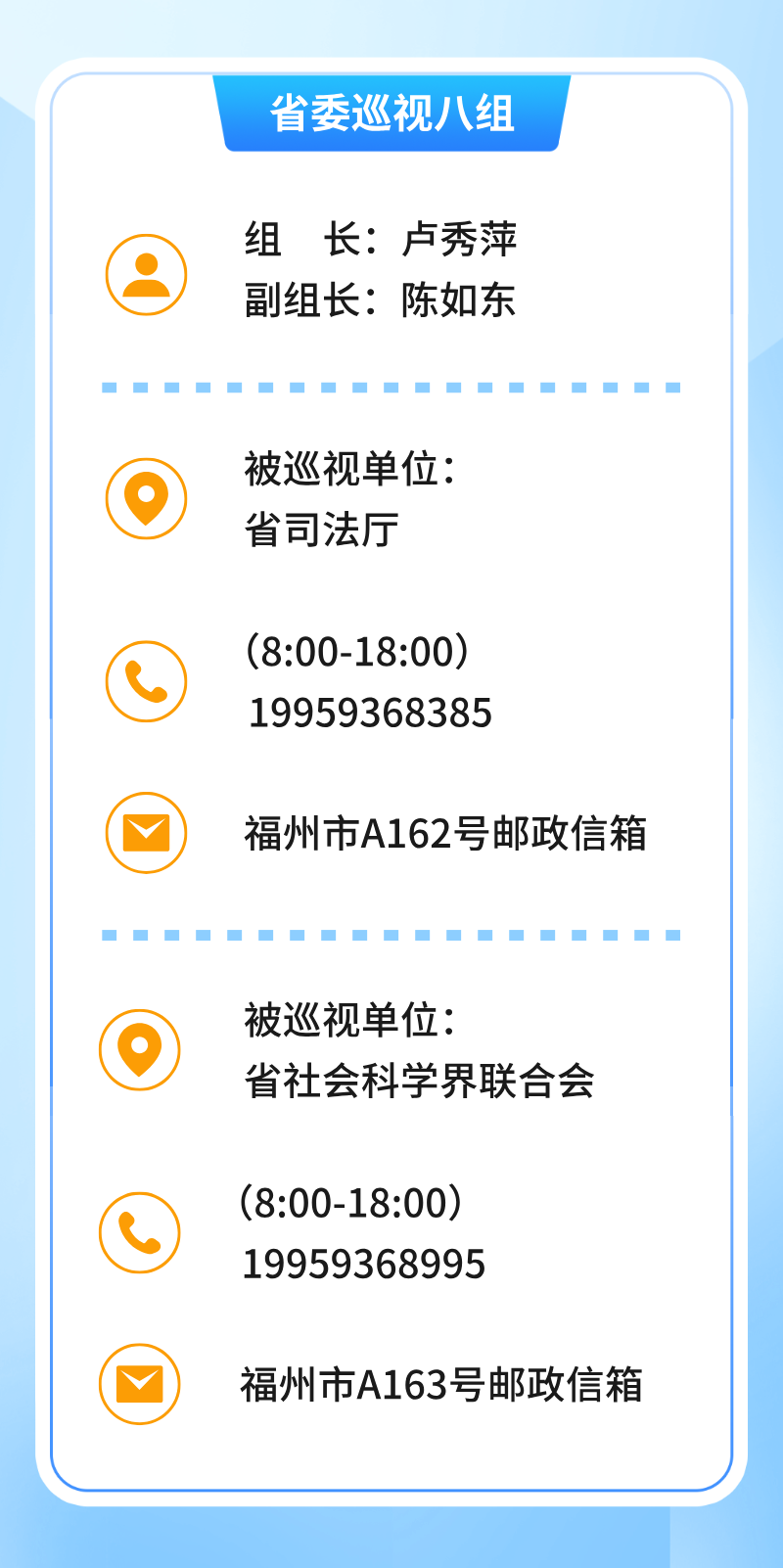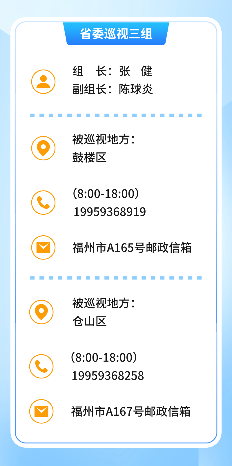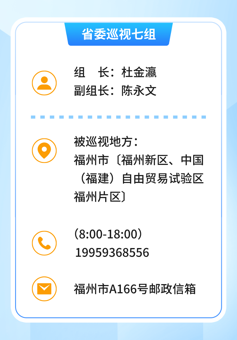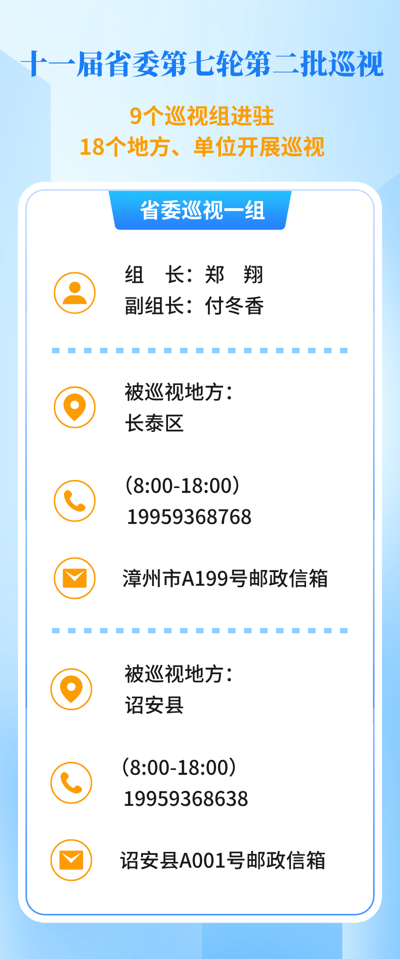 据悉,省委巡视组将在被巡视设区市工作2个月左右,在被巡视县(区)、单位工作40天左右。巡视期间设立专门值班电话和邮政信箱,主要受理反映被巡视党组织领导班子及其成员、下一级党组织主要负责人和重点岗位人员问题的来信来电来访,重点是关于违反政治纪律、组织纪律、廉洁纪律、群众纪律、工作纪律和生活纪律等方面的举报和反映。其他不属于巡视受理范围的信访问题,将按规定交相关部门负责处理。