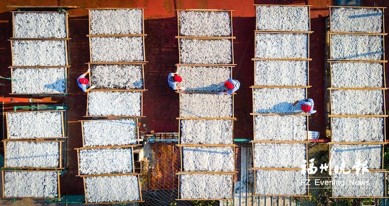 渔民晾晒丁香鱼。丁天霖 摄 眼下,连江定海湾丁香鱼鲜美上市,丰富市民餐桌。值得一提的是,这条“鱼”年产值约1.5亿元,曾打下全国出口市场的半壁江山。 15日,央视财经频道以《福建连江:丁香鱼进入丰产期》为题,聚焦连江丁香鱼上市。 眼下,有着“丁香鱼王国”之称的连江定海湾,迎来新一轮丁香鱼丰产期。渔民们紧抓捕捞黄金期,驾船出海,拉网开捕,将鲜美可口的丁香鱼加工成丁香鲄(俗称丁香鱼干),随后销往全国各地。