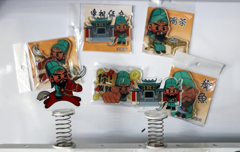 “这套以关帝文化为内涵的‘关小宝’形象,从IP设计之初就瞄准了年轻群体。你看,围绕IP设计出来的一系列表情包、冰箱贴、手机支架、车载摇摇乐,走的都是将优秀传统文化进行年轻化表达的路线。”吴华真一边介绍,一边向记者展示着关小宝IP全套共7种款式。
