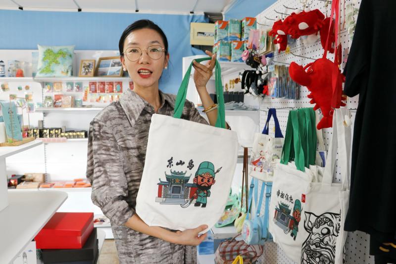 吴华真展示颇受台胞青睐的“关小宝”IP文创帆布袋