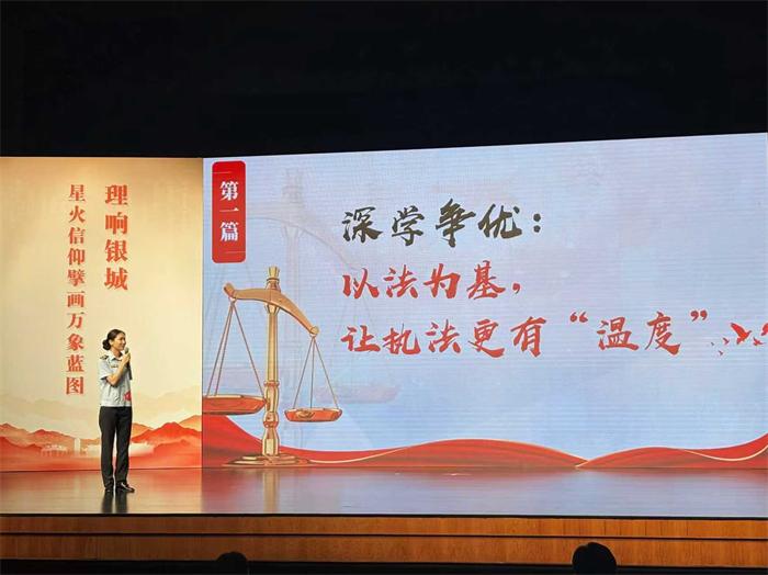 决赛中,王梦瑶同志以"'三争'铸魂守初心,情暖高速护民生"为主题,从三个层面展开宣讲:在"深学争优"方面,围绕"以法为基,让执法更有温度",结合"纠违治违""首违不罚""轻微免罚"等具体实践,阐述支队在严守法律底线中传递执法温情的做法;在"敢为争先"方面,聚焦"以责为要,让救援更有速度",通过"车流中紧急转运伤员""救助中暑晕厥驾驶员""通宵协助清捡翻车掉落民生物资"等真实案例,展现执法人员冲锋在前、守护平安的快速响应能力;在"实干争效"方面,紧扣"以民为本,让服务更有深度",讲述"耐心劝导村民自拆违建消除火情隐患""护航大件运输车辆助力重大民生工程"等事例,诠释支队融入属地发展、服务群众出行、优化营商环境的责任担当。整场宣讲既有理论高度,又贴近实际,生动展现了高速执法队伍"严格执法、温情服务"的良好形象,赢得了现场观众和评委的广泛认可。
