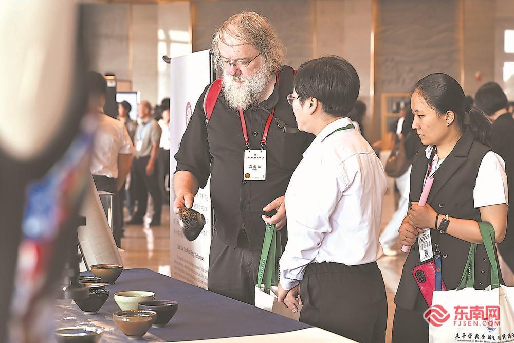 参会的外国嘉宾在活动现场了解建盏制作技艺。 福建日报记者 王毅 摄