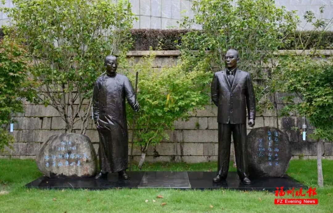 铜像的造型设计独具深意:何遂将军身着长衫,手持竹竿,迎风而立;吴石将军则身着西服,二人遥相对望。在他们之间的地面上,刻着细致的波纹,象征着波涛起伏的台湾海峡。而两位将军的目光始终望向同一个方向,这一细节则代表着他们共同的心愿——期盼全国解放、实现和平统一。
