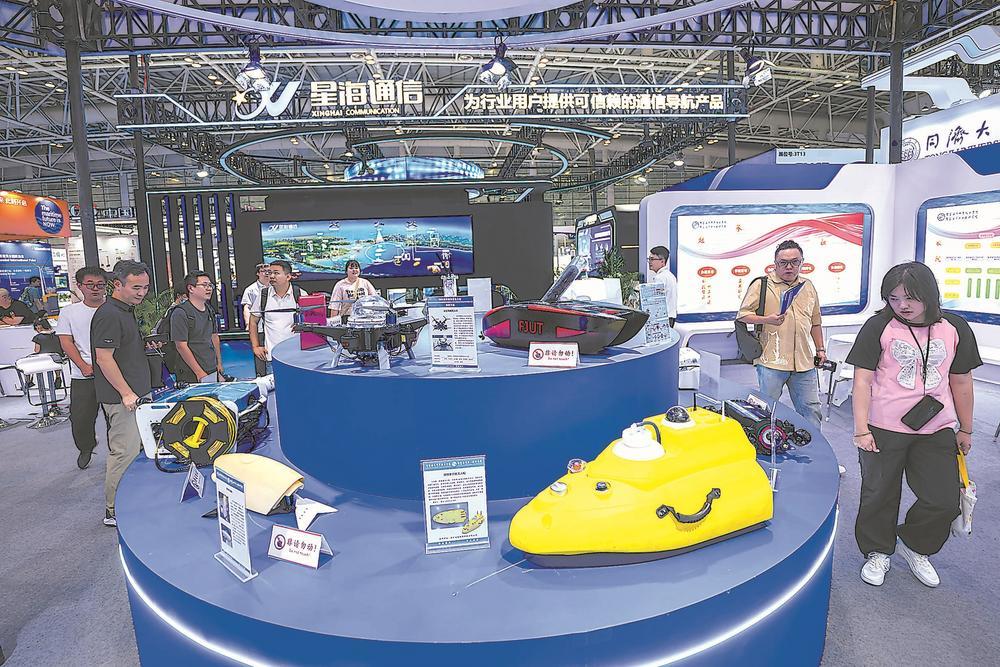 福建理工大学展位上的多款智能海洋装备吸引观众目光。福建日报记者 施辰静 摄