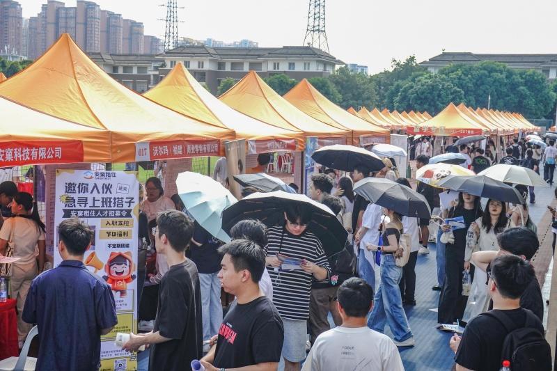 “千校万岗 筑梦基层”2025年首场秋季校园招聘会现场人头攒动 谭钦文 摄