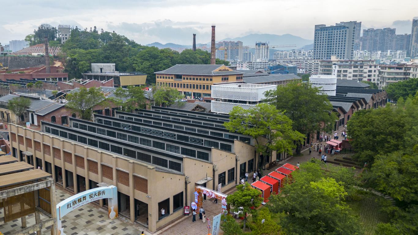 在众多工业遗产成功转型的启示下,红旗坊保留了诸多原厂区空间骨架。高耸醒目的烟囱,苏式锯齿形厂房、些许褪色的闽南红砖墙以及锈迹斑斑的油罐……红旗坊在建设过程,发挥了想象力对工业美学的创造性转化——用装置艺术的手法进行改造,形成了现有的框架楼。同时,规划工业遗产馆,利用现有厂房中保留的隧道窑,打造沉浸式体验,让游客在参观过程中感受红旗瓷厂的记忆,梳理红旗瓷厂历史档案,拍摄纪录片,深入挖掘白瓷的历史、工艺和艺术价值,打造国际文化符号。