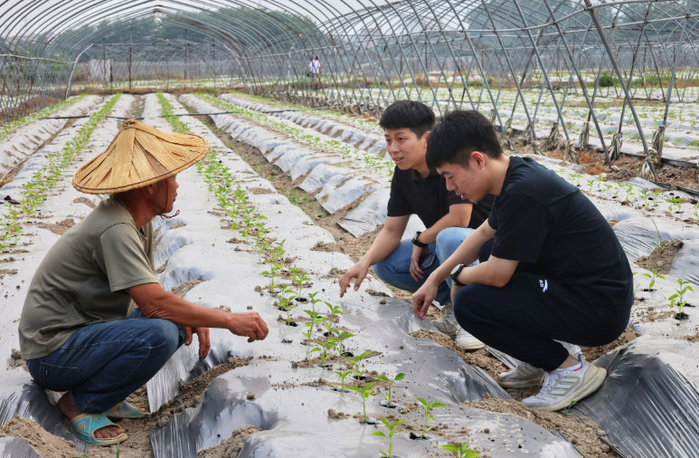 厦门市翔安区内厝镇干部在大棚里指导农户科学种植辣椒等经济作物。郑晓东摄