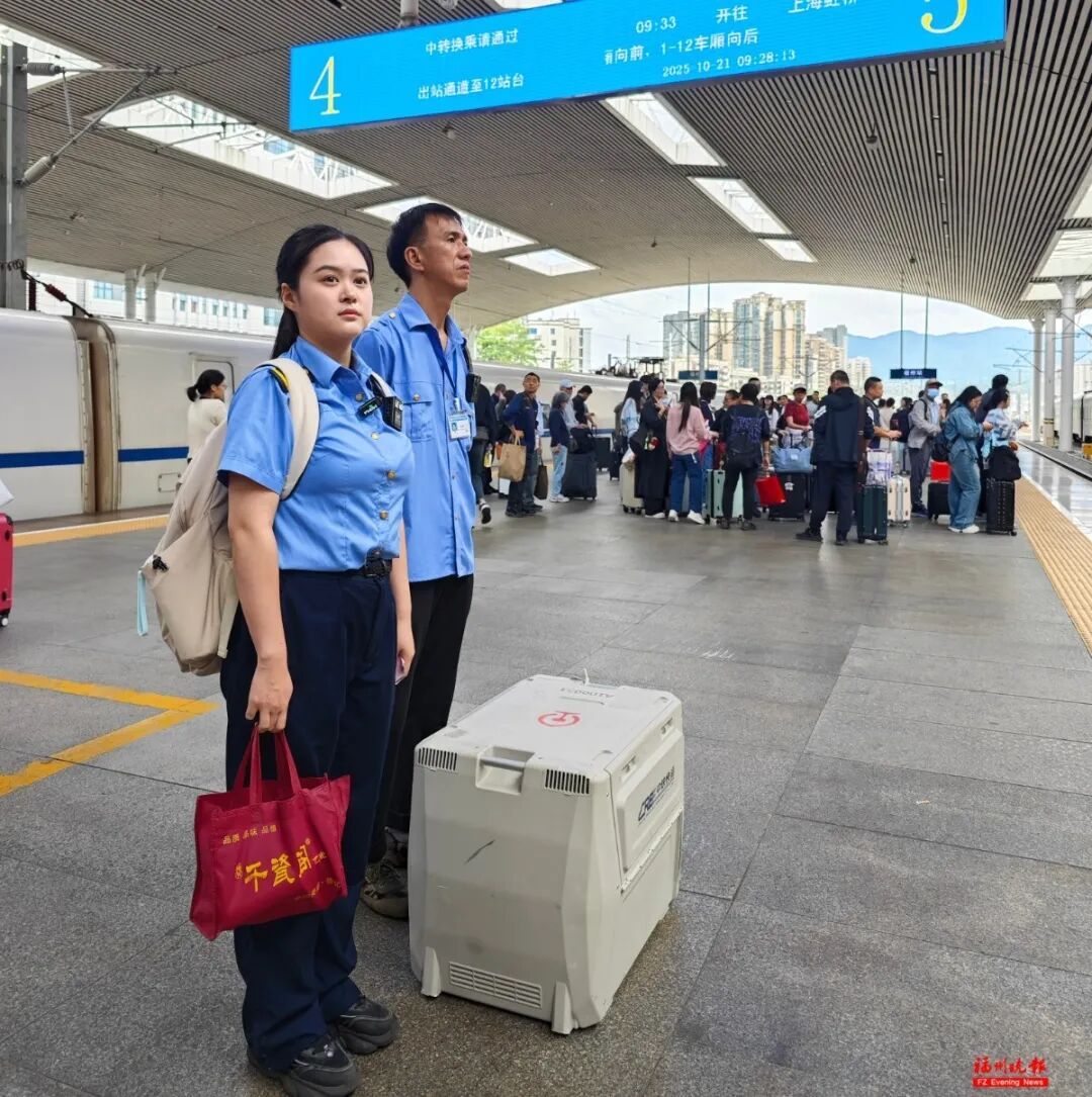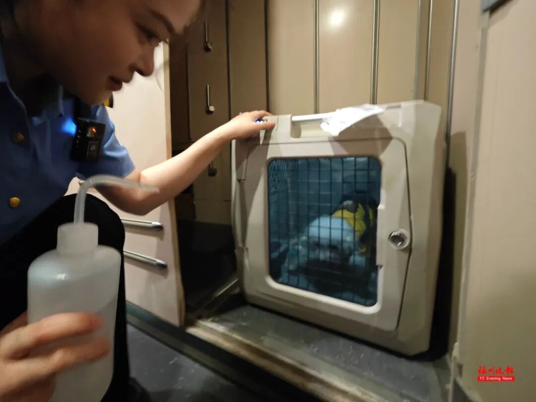 瞧这个小旅客的排场——先过手持扫描仪安检,再住进自带“星级酒店配置”的运输箱:实时空气循环、智能温湿监测、自动除味系统一应俱全。上车后,小家伙被妥帖安置在专属的高铁快运柜,既与旅客空间完全隔离,又有中铁快运专员全程“宠幸”:定时巡视、贴心看护,确保萌宝旅途舒心。