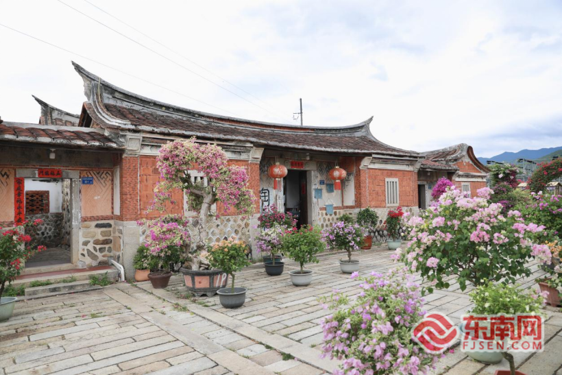 在大力发展三角梅产业的同时,古坑村也积极盘活闽南匣钵古厝群,沿着西源溪一路走,主播们来到了红砖黛瓦的传统古厝,古厝山墙多使用碎窑坯铺砌而成,层次分明、别具一格,是发展闽南特色民宿的重要基础。